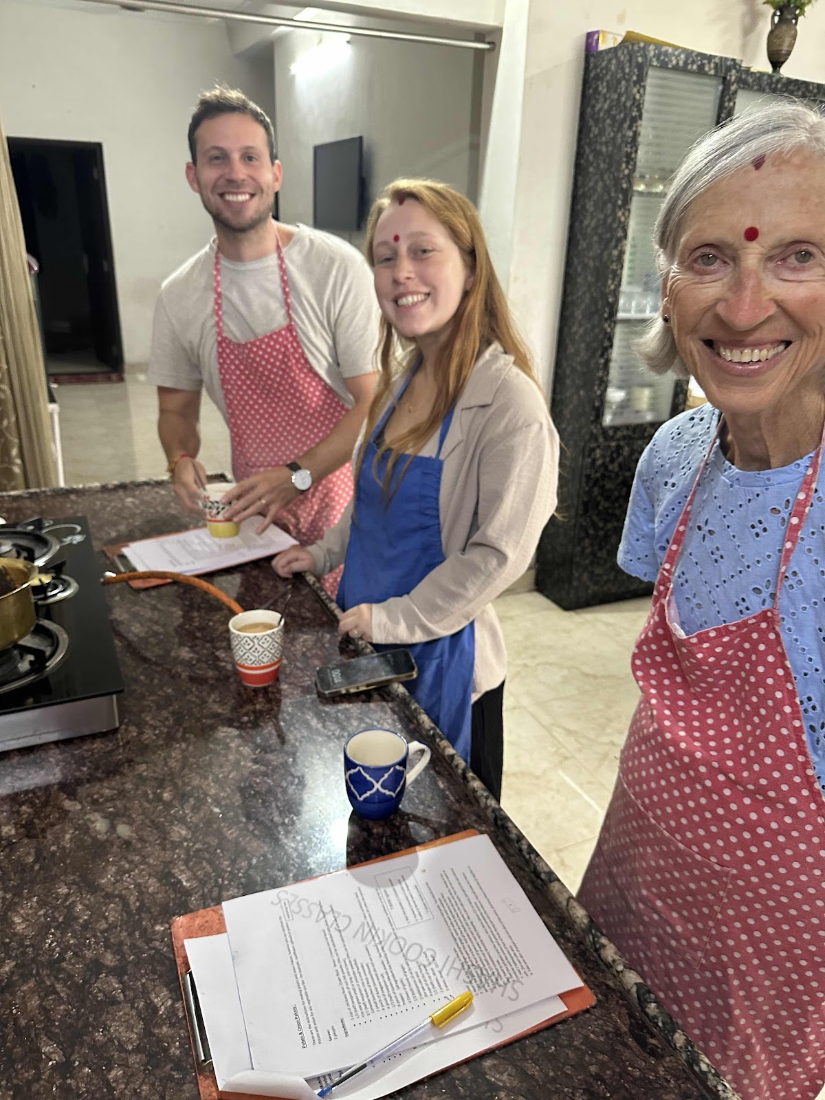 Our own day was taken up with a cooking lesson with a local family headed by Shashi a woman who lost her husband (murdered by his close friend) when she was 32 & had two young sons to care for. She is from the Brahman caste and following the “rules” she was not allowed to remarry and had to find a way to support her young family as there was no wider family support available.