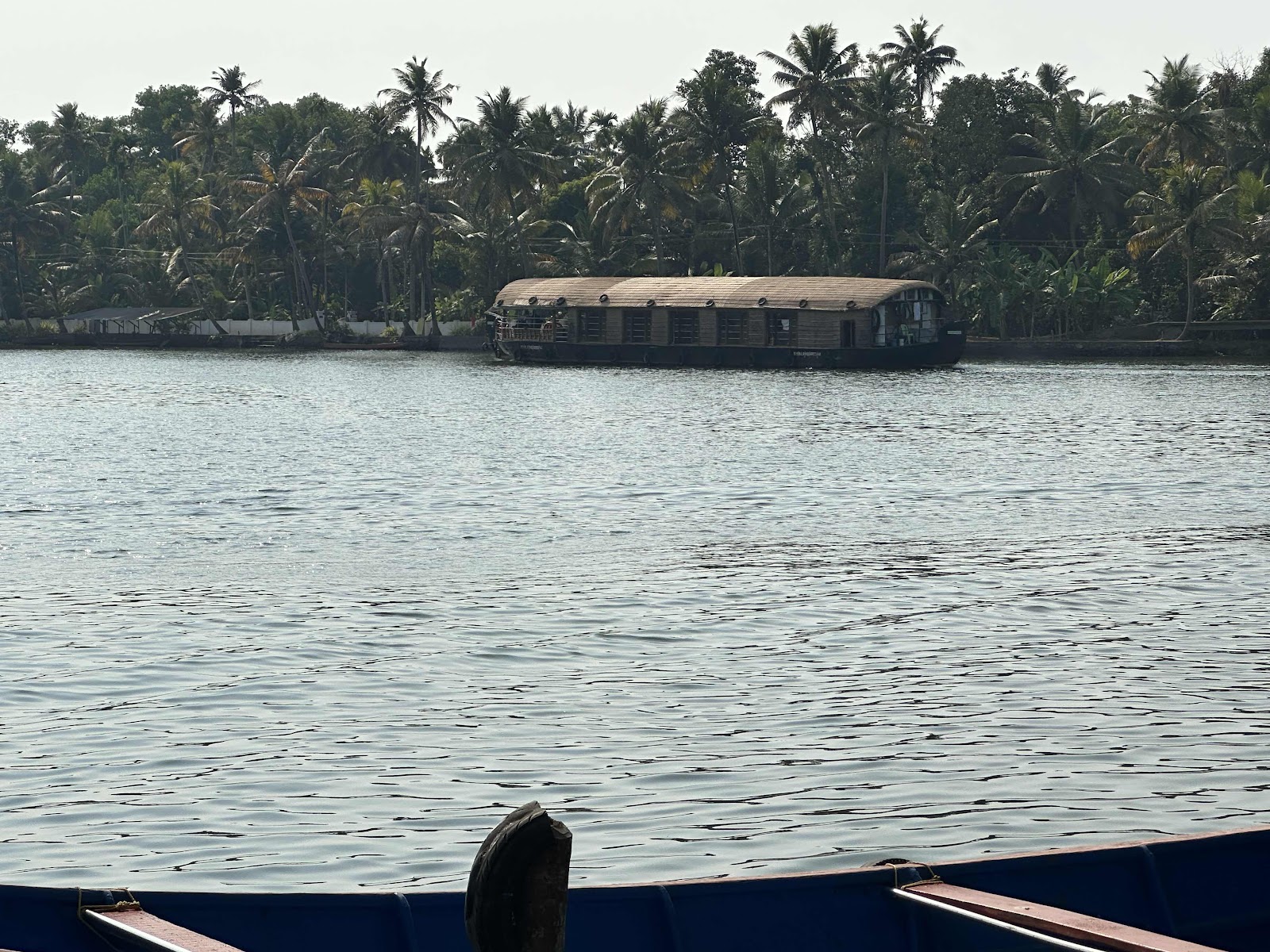 So after settling in we went for an interesting walk along the “broad walk”, saw a ferry stop and pickup a family, house boats moving through the back waters, some spices drying in the sun, the rice paddies, more bananas, mangoes still coming into season, coconuts on and off the trees and a funeral (& got zapped by the 32 degree muggy day).